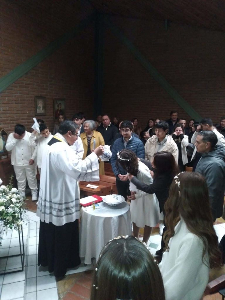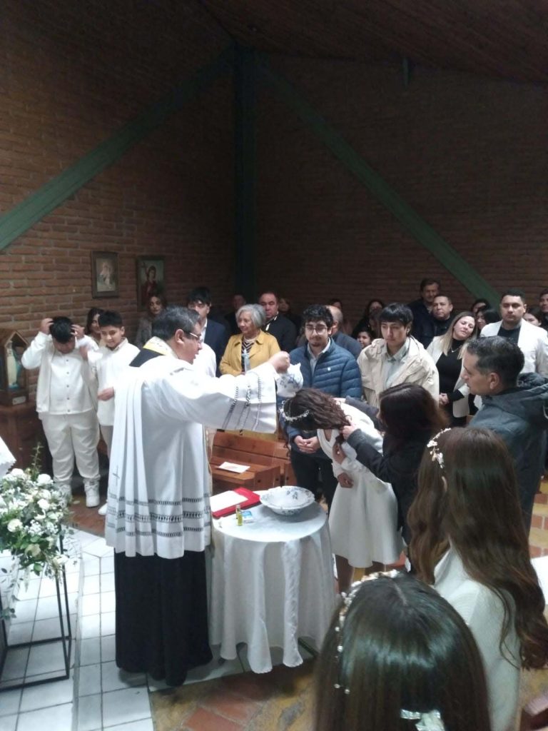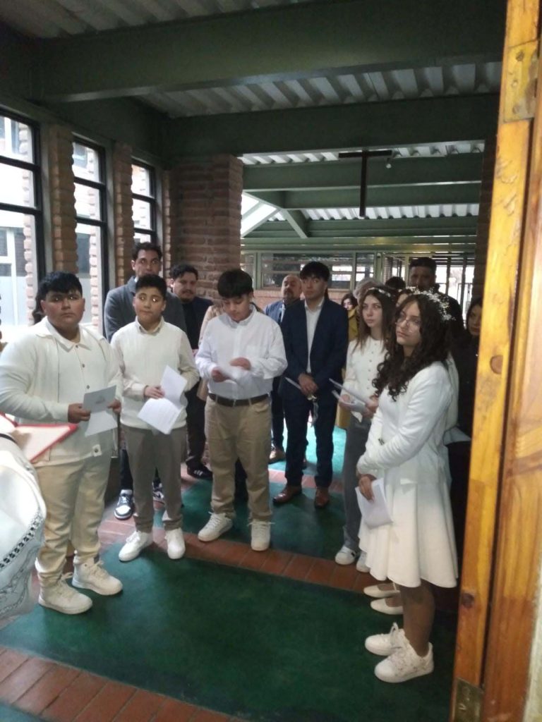 En el mes de agosto, alumnos de 5° a 8° básico del Colegio San Bartolomé vivieron importantes momentos en su camino de fe. Se realizó en el colegio la ceremonia en que algunos alumnos recibieron en sacramento del Bautismo y, la semana siguiente, se realizó la ceremonia de la Primera Comunión en la Parroquia San Agustín de Calera de Tango. Estas instancias fueron acompañadas con alegría y recogimiento por sus familias, docentes y compañeros, reafirmando la importancia de la vida espiritual en nuestra comunidad educativa.