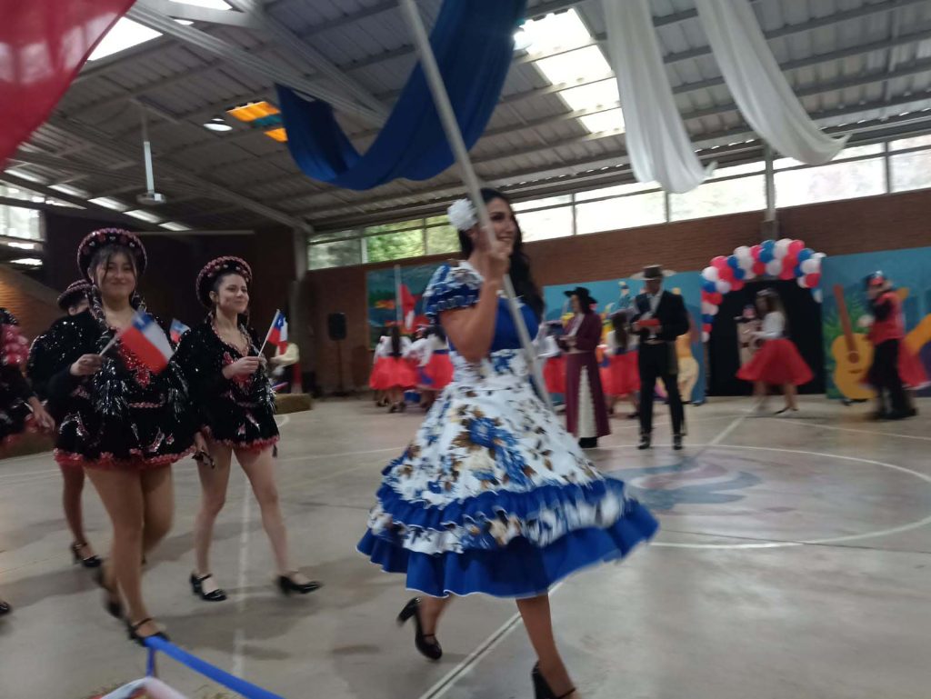 La mañana comenzó con el tradicional Baile a la Bandera, para continuar con una presentación muy especial a cargo de los alumnos de IV Medio, quienes ofrecieron un pie de cueca junto a apoderados, profesores y los más pequeños del colegio, en un momento lleno de cariño y simbolismo que refleja el espíritu de esta generación.