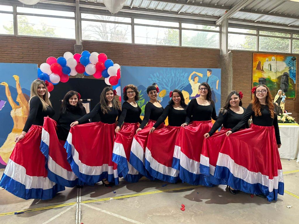 Cómo no destacar el trabajo de los profesores qué se sumaron a la celebración, vistiendo atuendos alusivos a Chile y animando con entusiasmo las presentaciones de sus estudiantes.