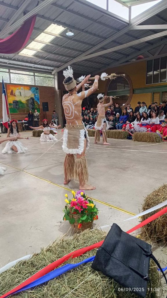 La jornada culminó con la presentación de IV Medio, quienes interpretaron un baile Rapa Nui y, al finalizar, desplegaron un lienzo pintado a mano con un mensaje de despedida para toda la comunidad, cerrando con emoción su última celebración de Fiestas Patrias en el colegio.
