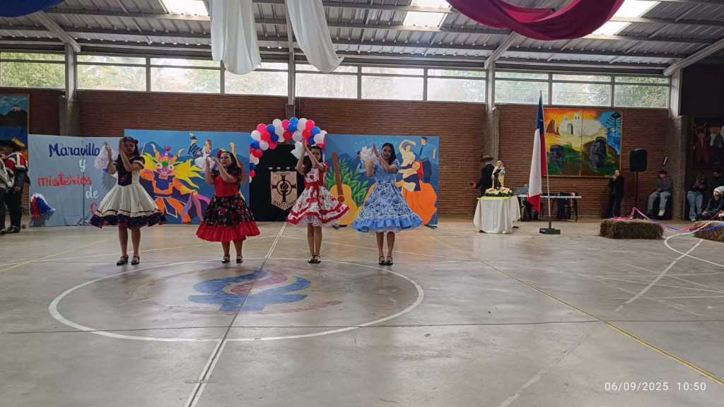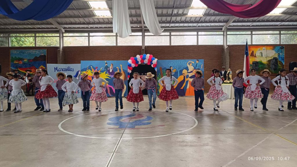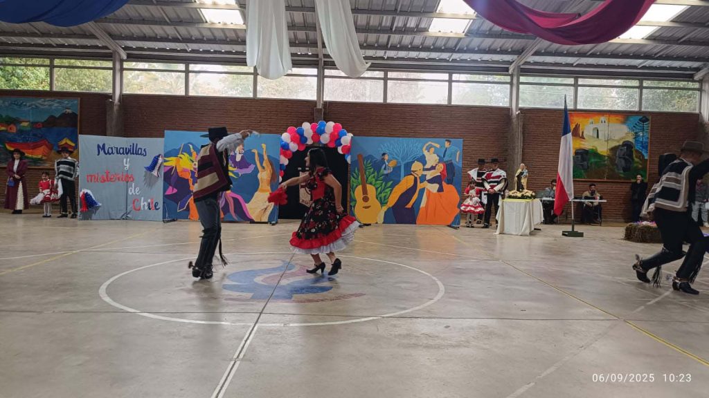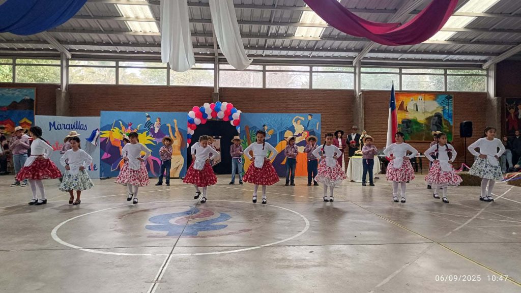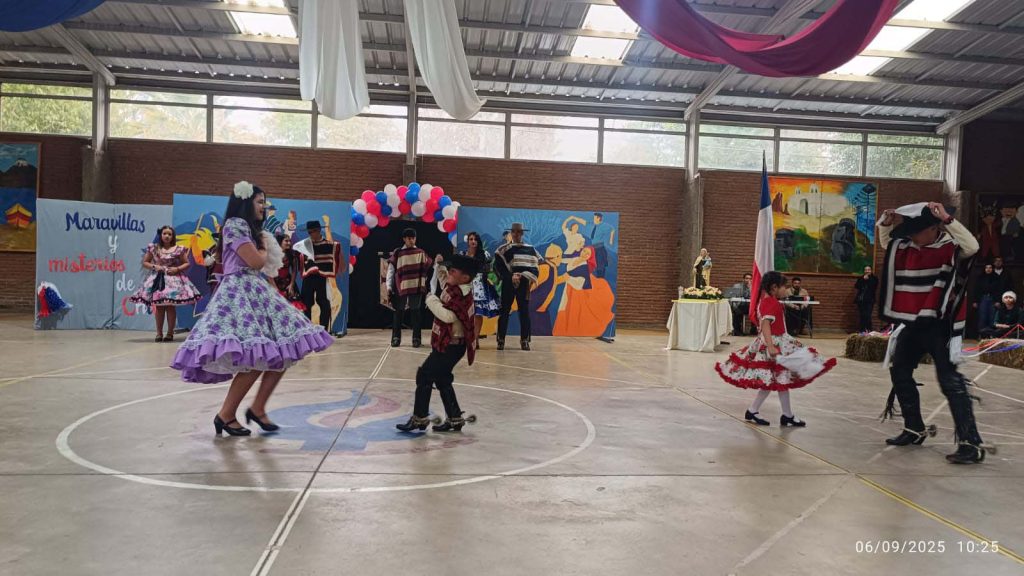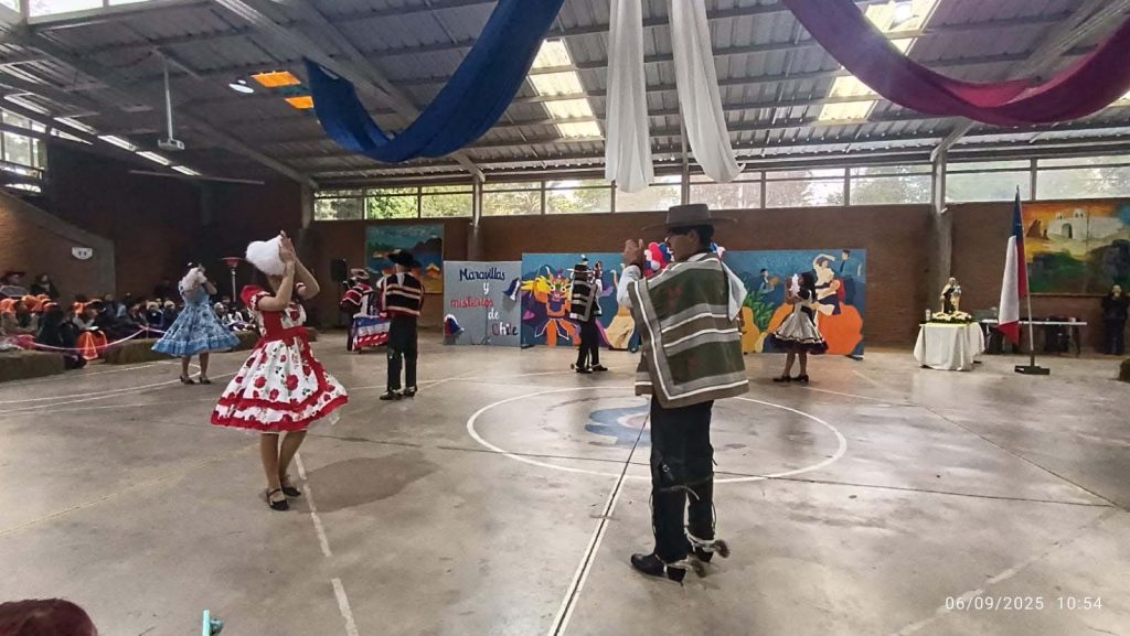 Posteriormente, los distintos cursos ofrecieron un recorrido por el folclor de todo Chile, presentando bailes típicos de las diversas zonas del país, desde el norte hasta la zona austral. Cada curso se preparó con esmero, acompañados por sus profesores y familias, que participaron activamente en la creación de trajes, decoraciones y detalles alusivos a nuestra identidad nacional.
